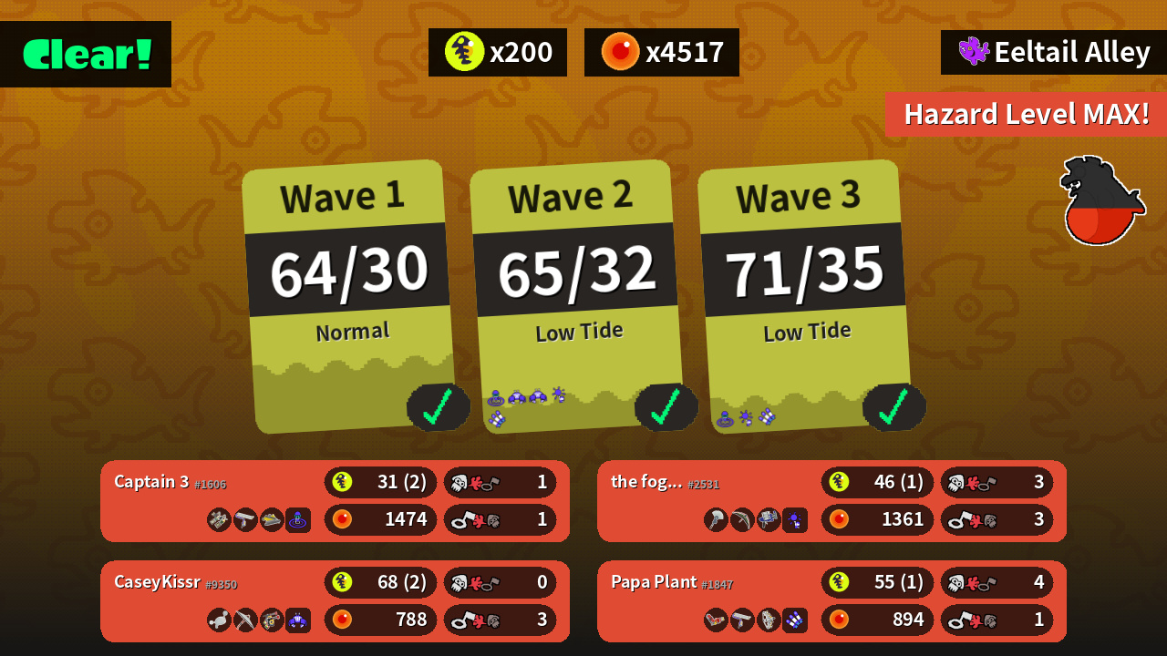| Special | Wave Breaker (2) | Crab Tank (2) | Triple Inkstrike (2) | Booyah Bomb (2) |