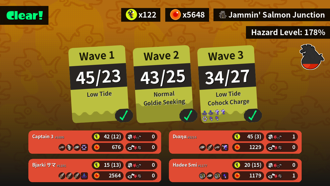 | Weapons | Grizzco Charger Grizzco Stringer Grizzco Brella | Grizzco Brella Grizzco Splatana Grizzco Charger | Grizzco Slosher Grizzco Brella Grizzco Slosher | Grizzco Splatana Grizzco Splatana Grizzco Splatana |