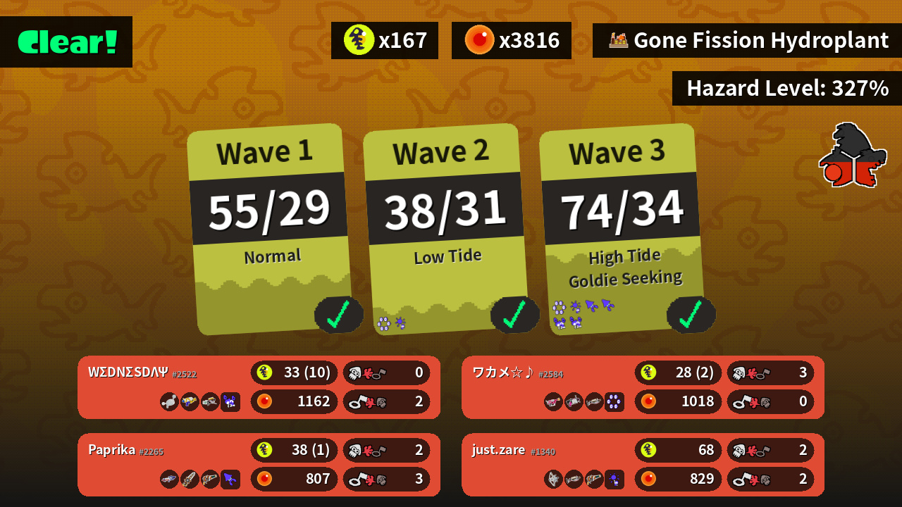 | Weapons | Luna Blaster Splattershot Grizzco Blaster | Tri-Stringer Grizzco Charger Squeezer | Splattershot Pro Grizzco Splatana Squeezer | Rapid Blaster Pro .52 Gal Grizzco Charger |