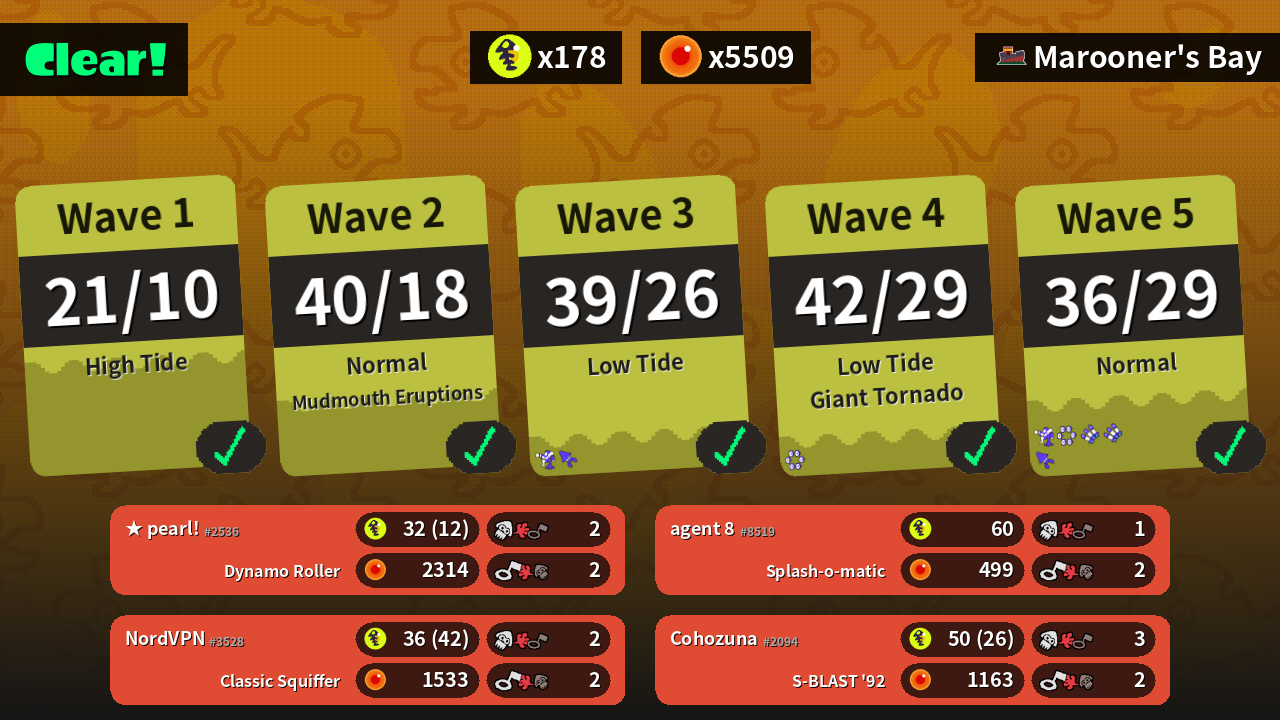 | Boss Salmonid | 12 | 7 | 19 | 18 |