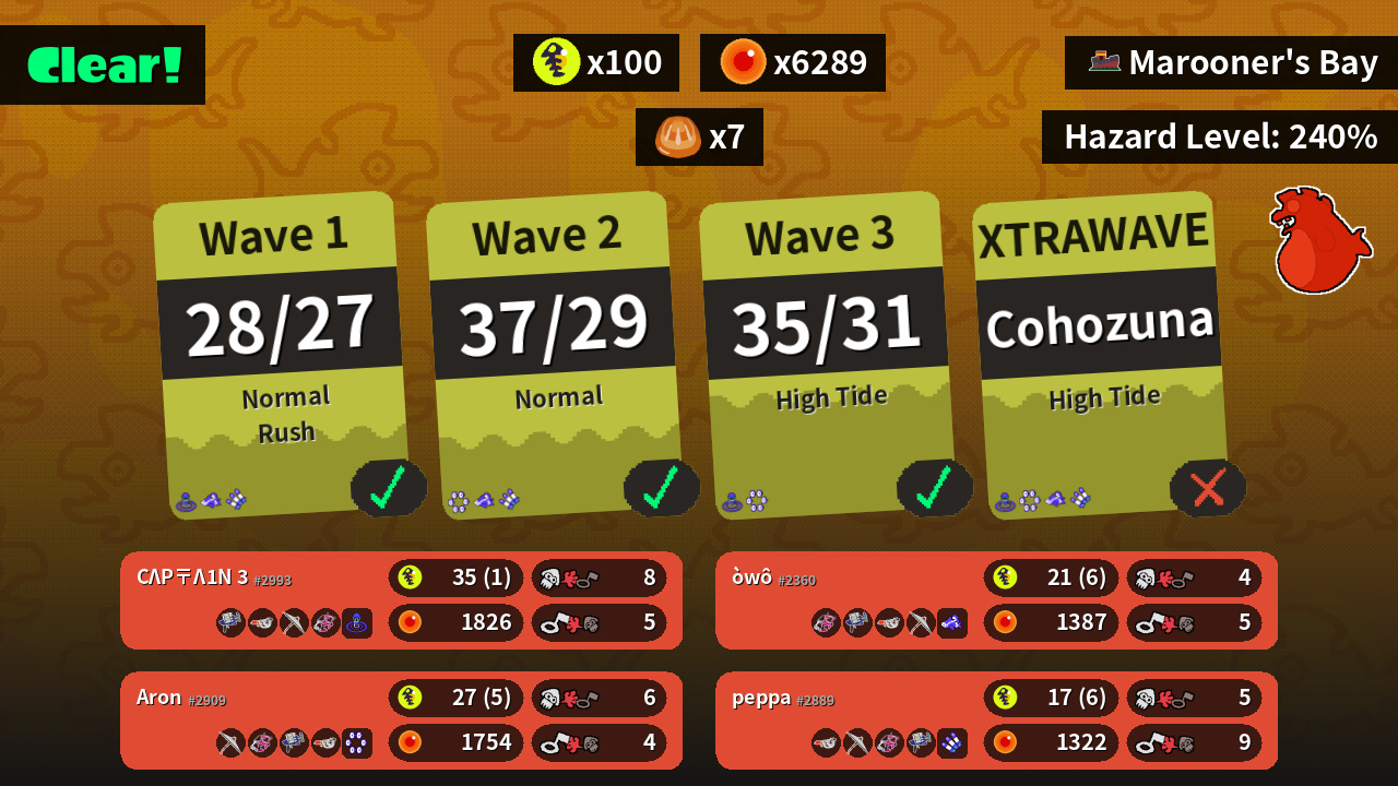 | Weapons | Clash Blaster Goo Tuber Recycled Brella 24 Mk I Dapple Dualies | Recycled Brella 24 Mk I Dapple Dualies Clash Blaster Goo Tuber | Dapple Dualies Clash Blaster Goo Tuber Recycled Brella 24 Mk I | Goo Tuber Recycled Brella 24 Mk I Dapple Dualies Clash Blaster |