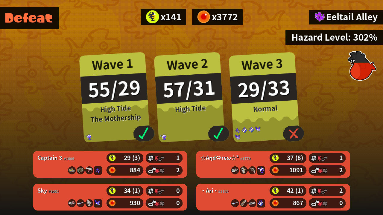 | Weapons | Dread Wringer Explosher Flingza Roller | E-liter 4K Grizzco Splatana Ballpoint Splatling | Heavy Edit Splatling Grizzco Stringer Tenta Brella | Blaster E-liter 4K Grizzco Stringer |