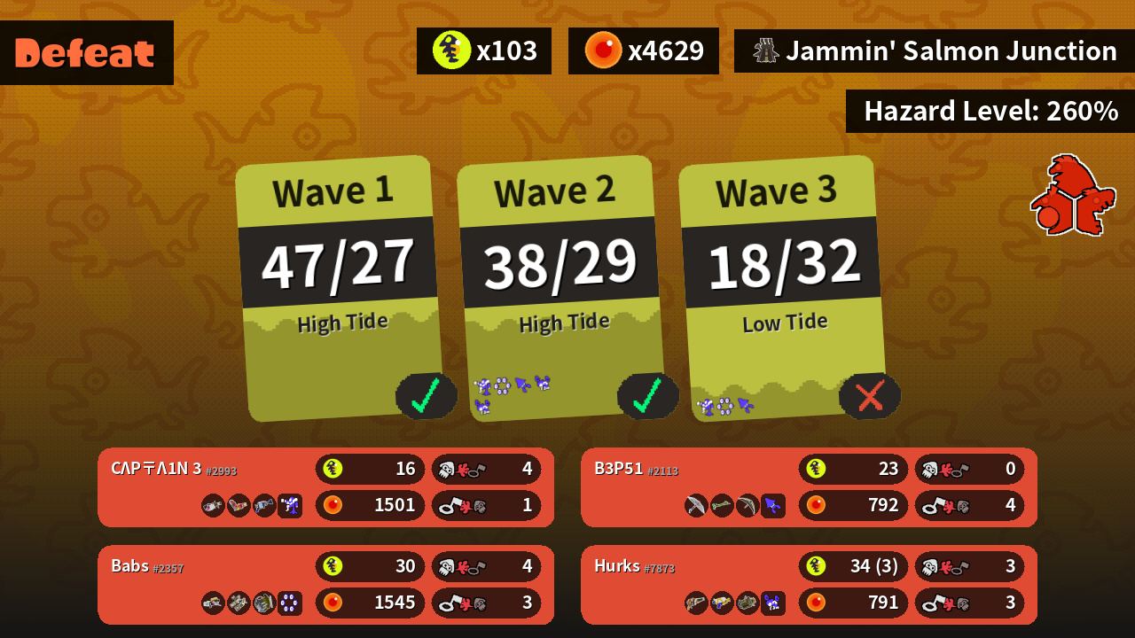 | Boss Salmonid | 31 | 8 | 17 | 20 |