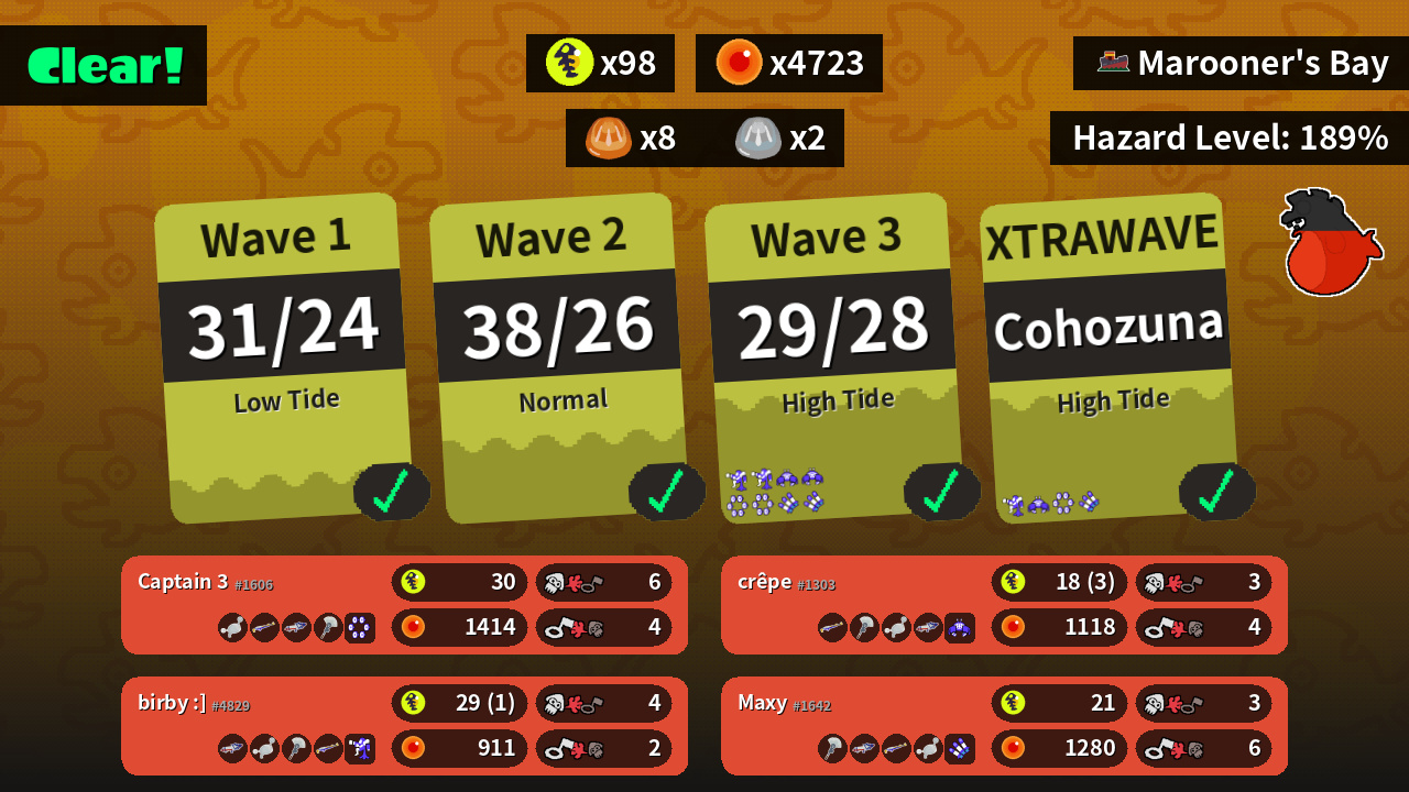 | Boss Salmonid | 20 | 20 | 21 | 9 |