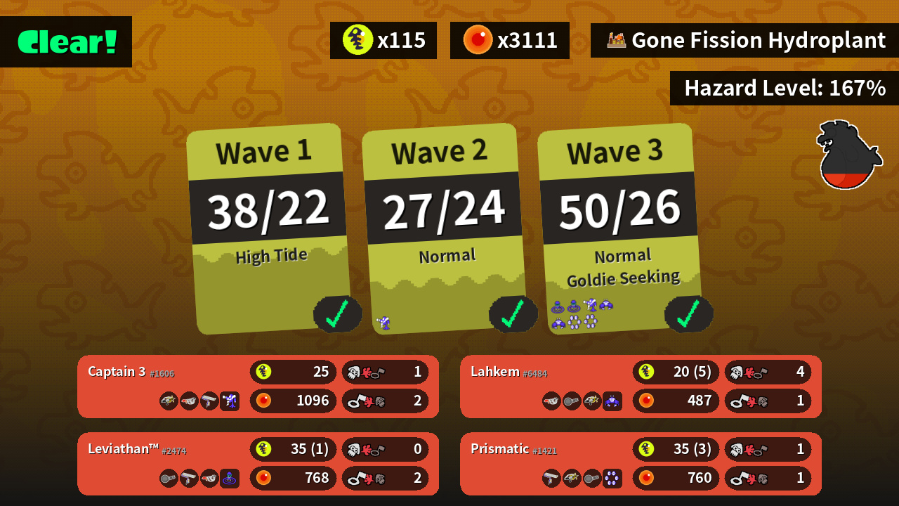 | Weapons | Splash-o-matic Goo Tuber Splat Roller | Nautilus 47 Splat Roller Goo Tuber | Splat Roller Splash-o-matic Nautilus 47 | Goo Tuber Nautilus 47 Splash-o-matic |