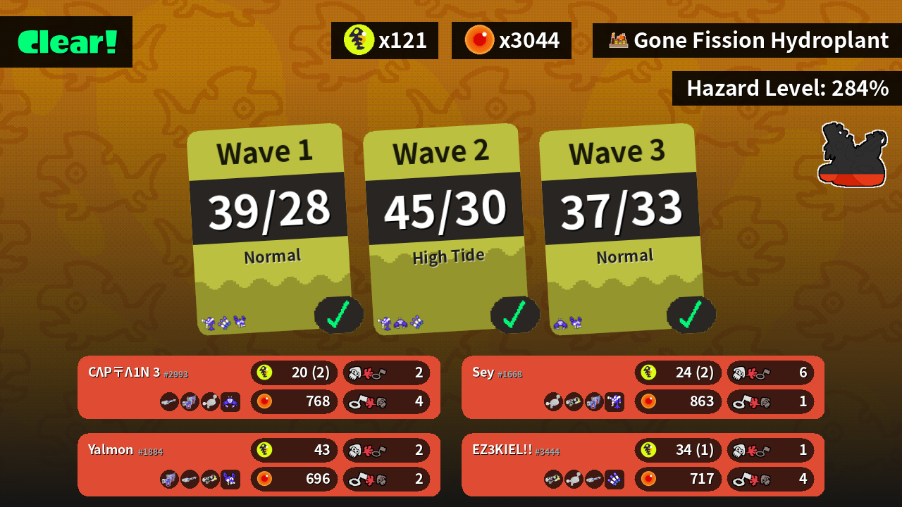| Weapons | E-liter 4K Glooga Dualies Luna Blaster | Glooga Dualies E-liter 4K Splattershot Nova | Splattershot Nova Luna Blaster E-liter 4K | Luna Blaster Splattershot Nova Glooga Dualies |