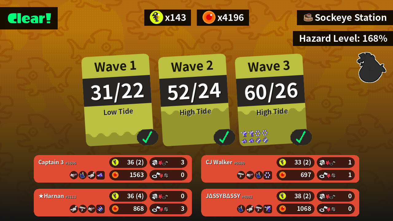 | Boss Salmonid | 15 | 14 | 19 | 7 |