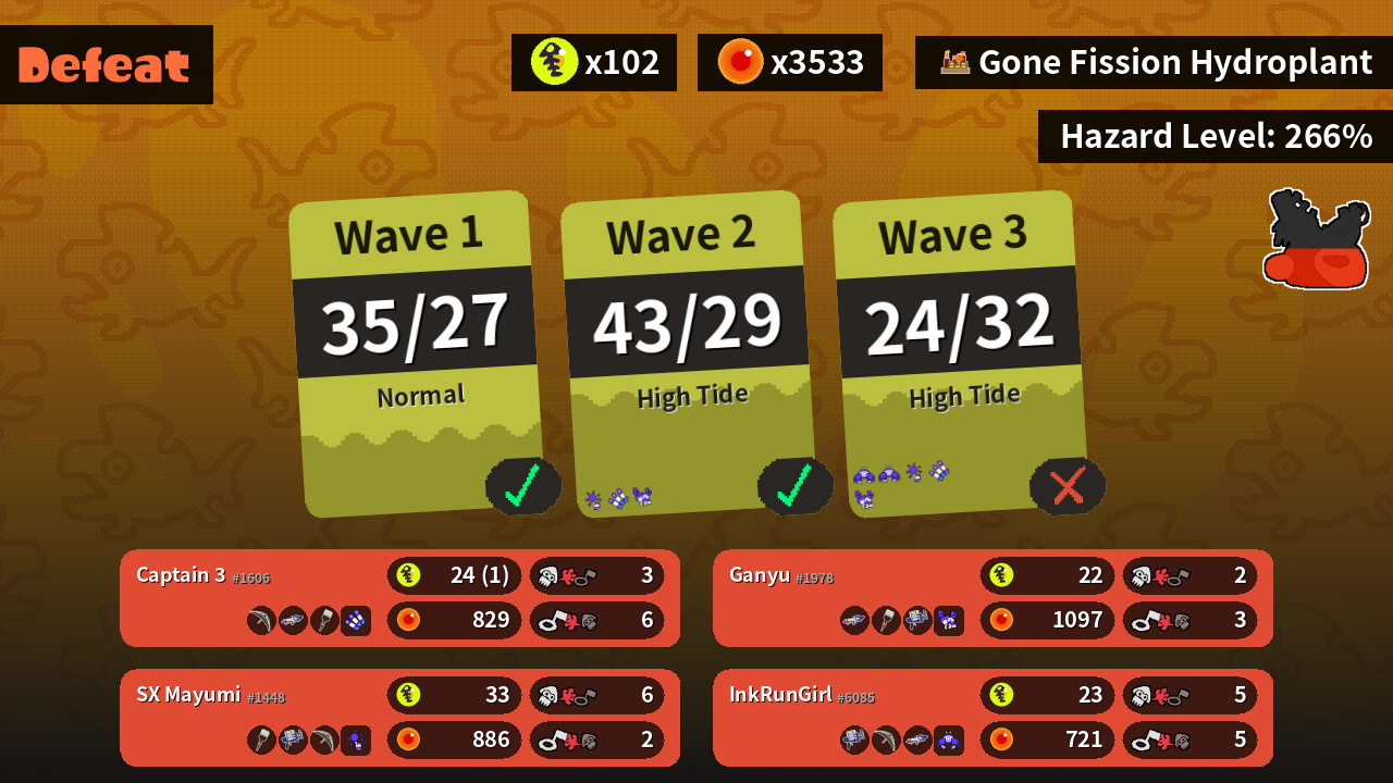 | Special | Triple Inkstrike (2) | Booyah Bomb (2) | Crab Tank (2) | Triple Splashdown (2) |