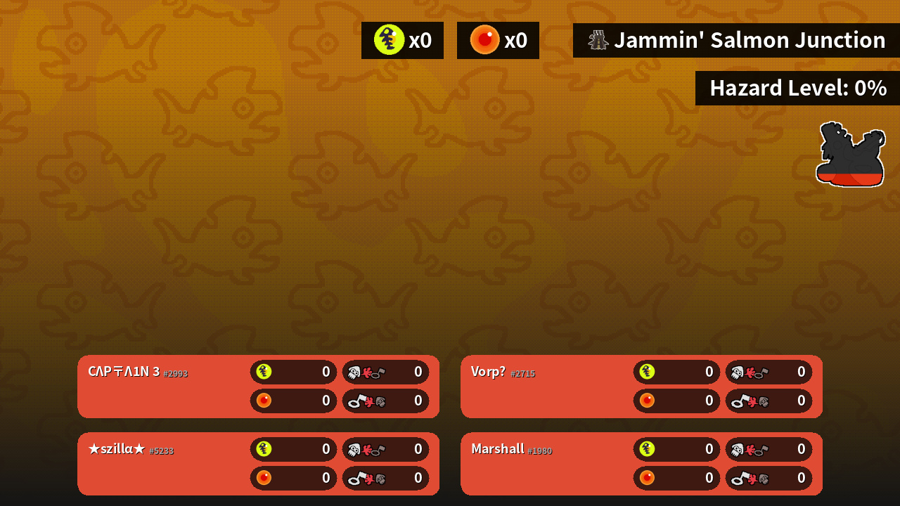 | Boss Salmonid | 0 | 0 | 0 | 0 |