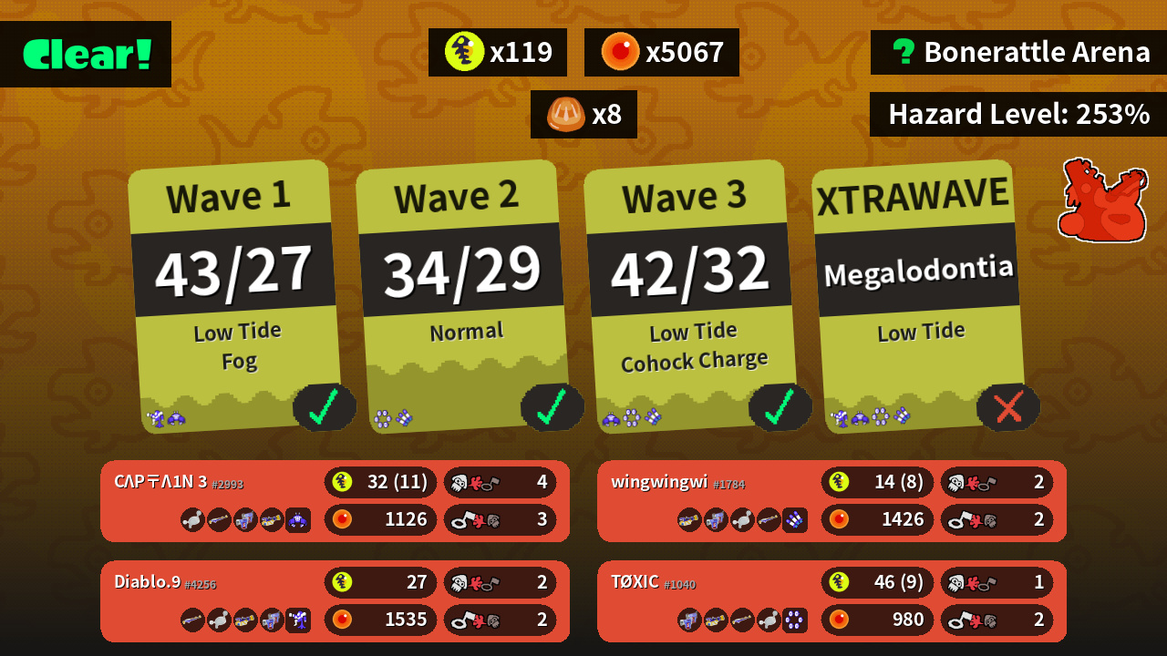 | Boss Salmonid | 26 | 13 | 19 | 25 |