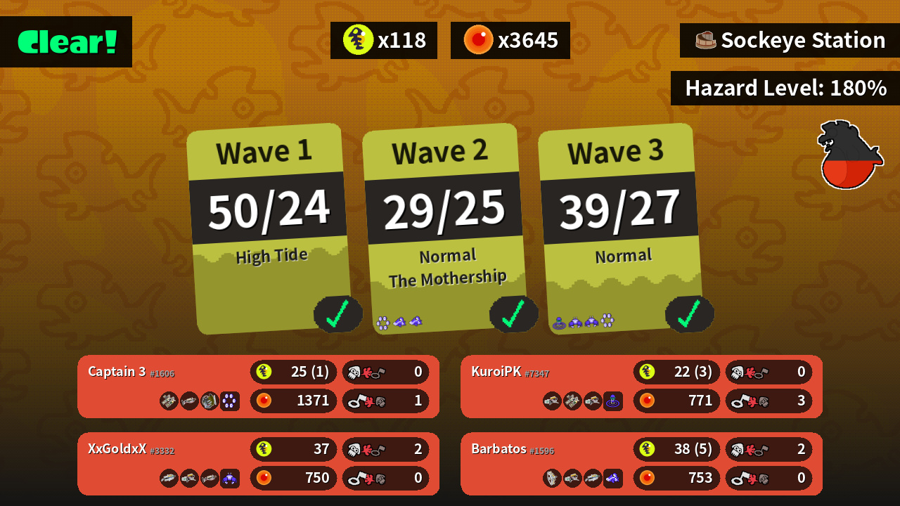 | Weapons | Grizzco Dualies Grizzco Charger Grizzco Slosher | Grizzco Stringer Grizzco Blaster Grizzco Brella | Grizzco Brella Grizzco Blaster Grizzco Charger | Grizzco Blaster Grizzco Dualies Grizzco Blaster |