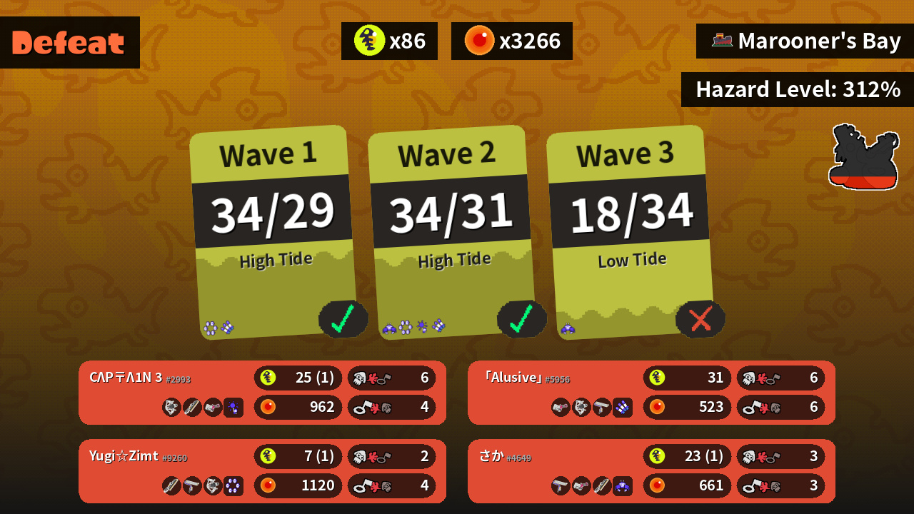 | Weapons | REEF-LUX 450 Splatana Wiper Heavy Splatling | Heavy Splatling REEF-LUX 450 Splat Roller | Splat Roller Heavy Splatling Splatana Wiper | Splatana Wiper Splat Roller REEF-LUX 450 |