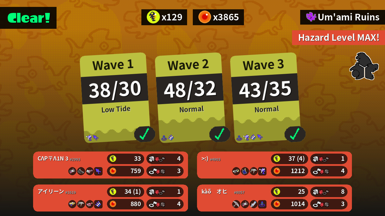| Weapons | .52 Gal Bloblobber Heavy Splatling | Splattershot Nova Tri-Slosher Grizzco Roller | Splattershot Grizzco Roller Rapid Blaster Pro | Splat Brella .52 Gal Mint Decavitator |