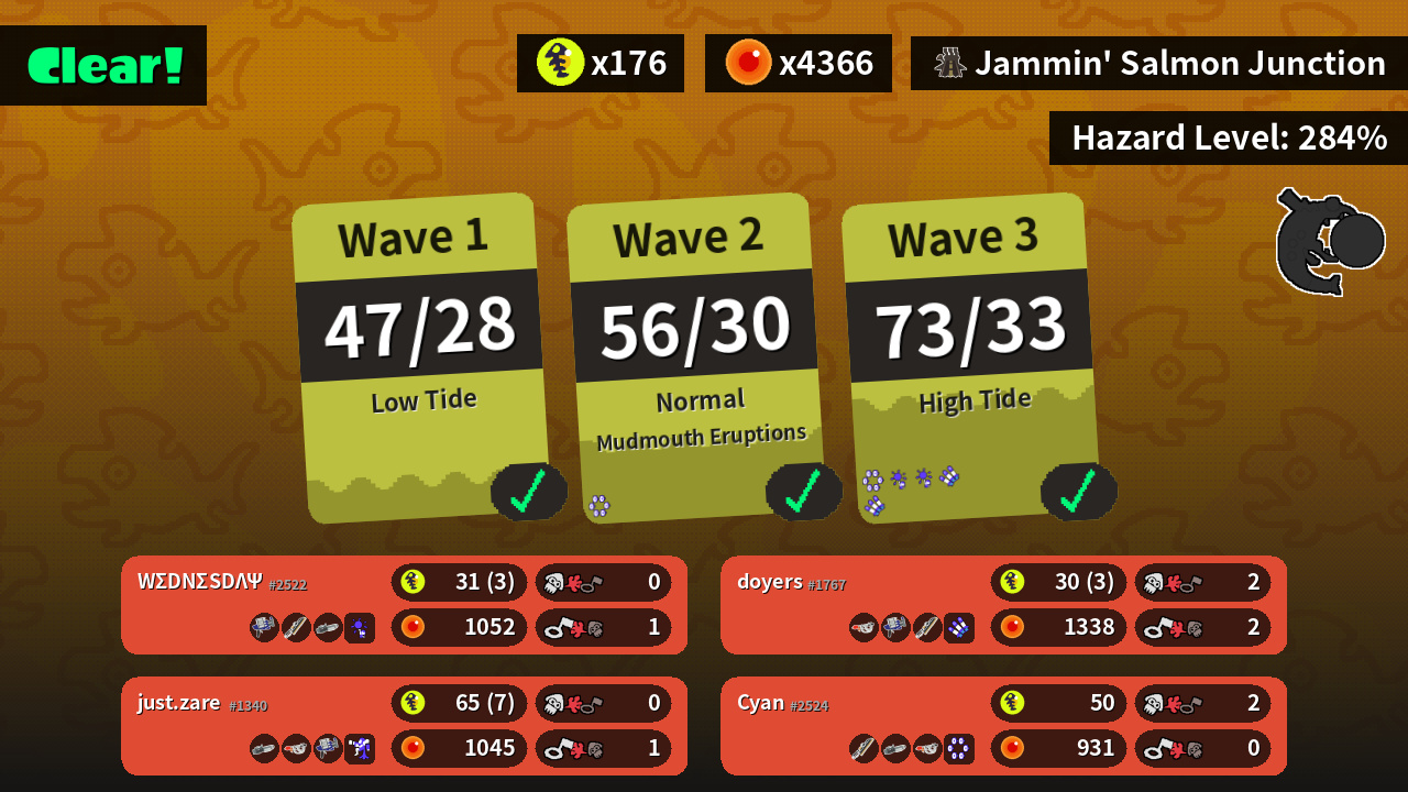 | Weapons | Clash Blaster Splatana Wiper Ballpoint Splatling | Ballpoint Splatling Goo Tuber Clash Blaster | Splatana Wiper Ballpoint Splatling Goo Tuber | Goo Tuber Clash Blaster Splatana Wiper |