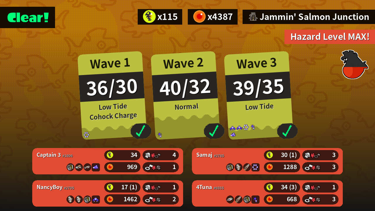 | Weapons | Grizzco Slosher Grizzco Blaster Grizzco Charger | Grizzco Brella Grizzco Splatana Grizzco Slosher | Grizzco Slosher Grizzco Stringer Grizzco Splatana | Grizzco Stringer Grizzco Stringer Grizzco Slosher |