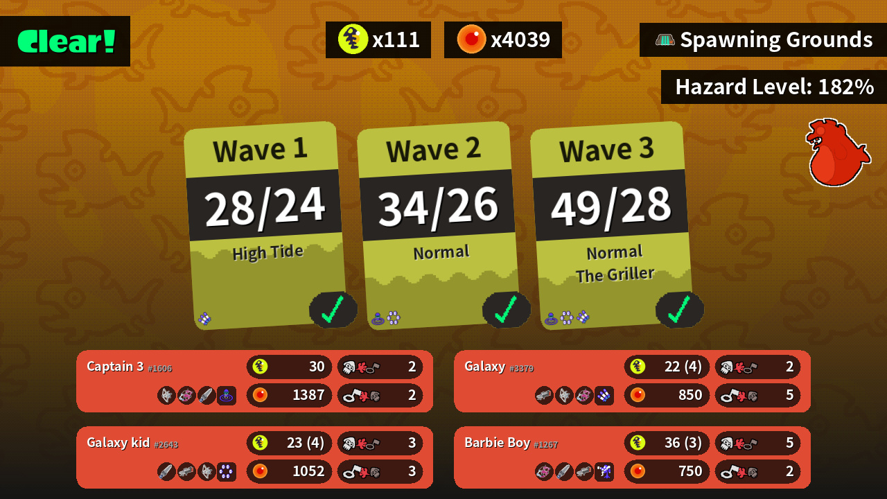 | Weapons | Tri-Stringer Dapple Dualies Splatana Stamper | Dapple Dualies Splatana Stamper S-BLAST '92 | Splatana Stamper S-BLAST '92 Tri-Stringer | S-BLAST '92 Tri-Stringer Dapple Dualies |