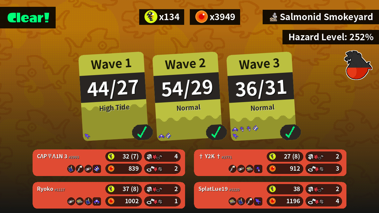 | Boss Salmonid | 17 | 13 | 22 | 18 |