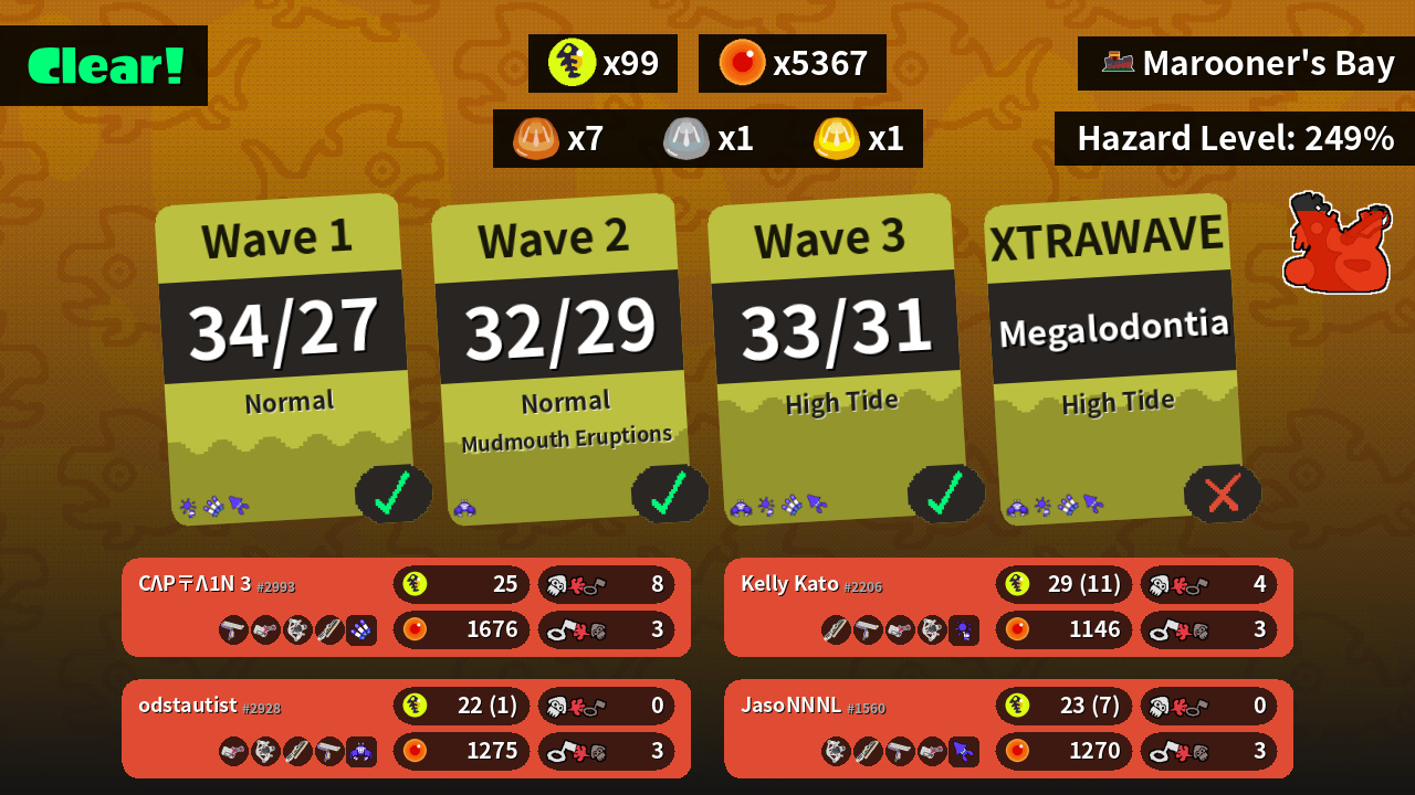 | Special | Triple Inkstrike (2) | Booyah Bomb (2) | Kraken Royale (2) | Crab Tank (2) |