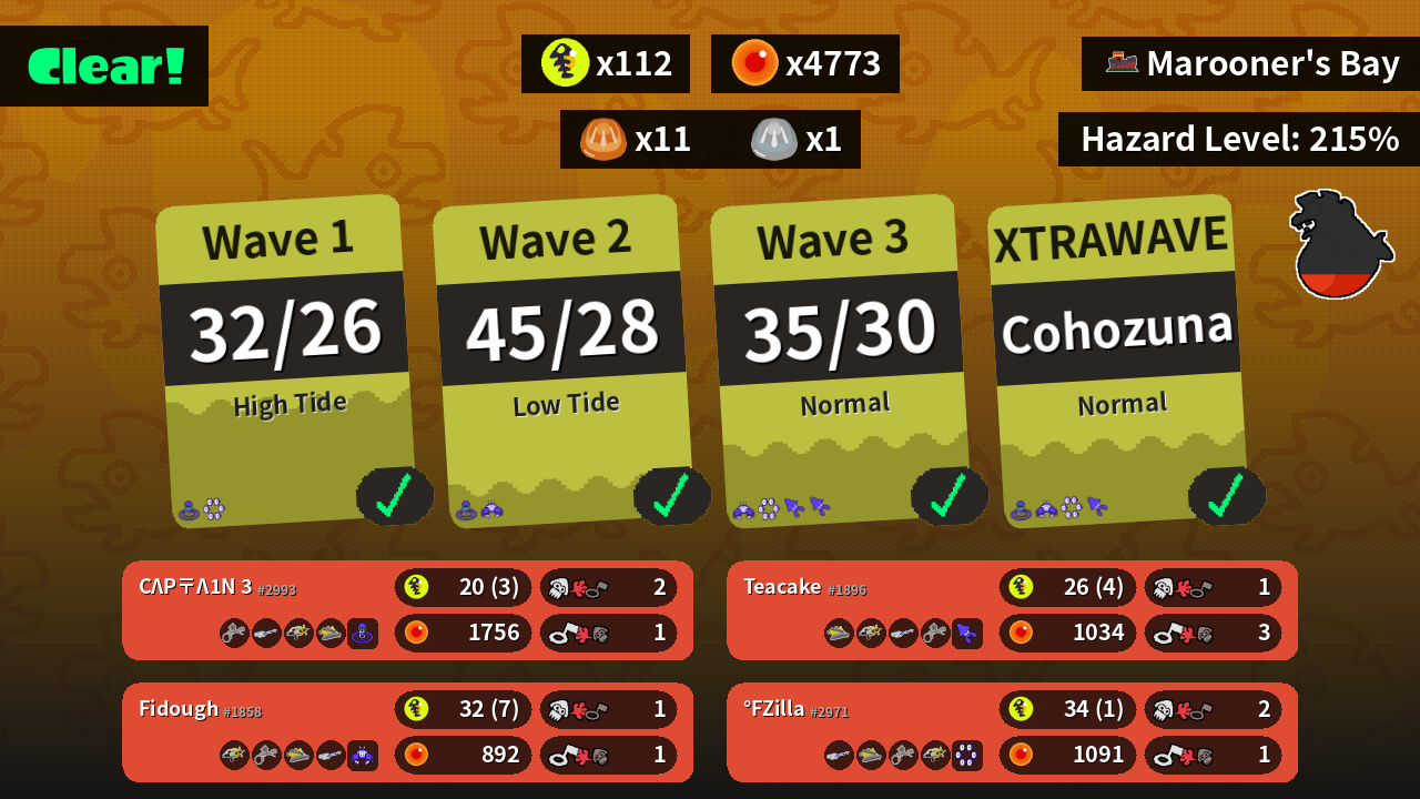 | Boss Salmonid | 29 | 15 | 12 | 19 |