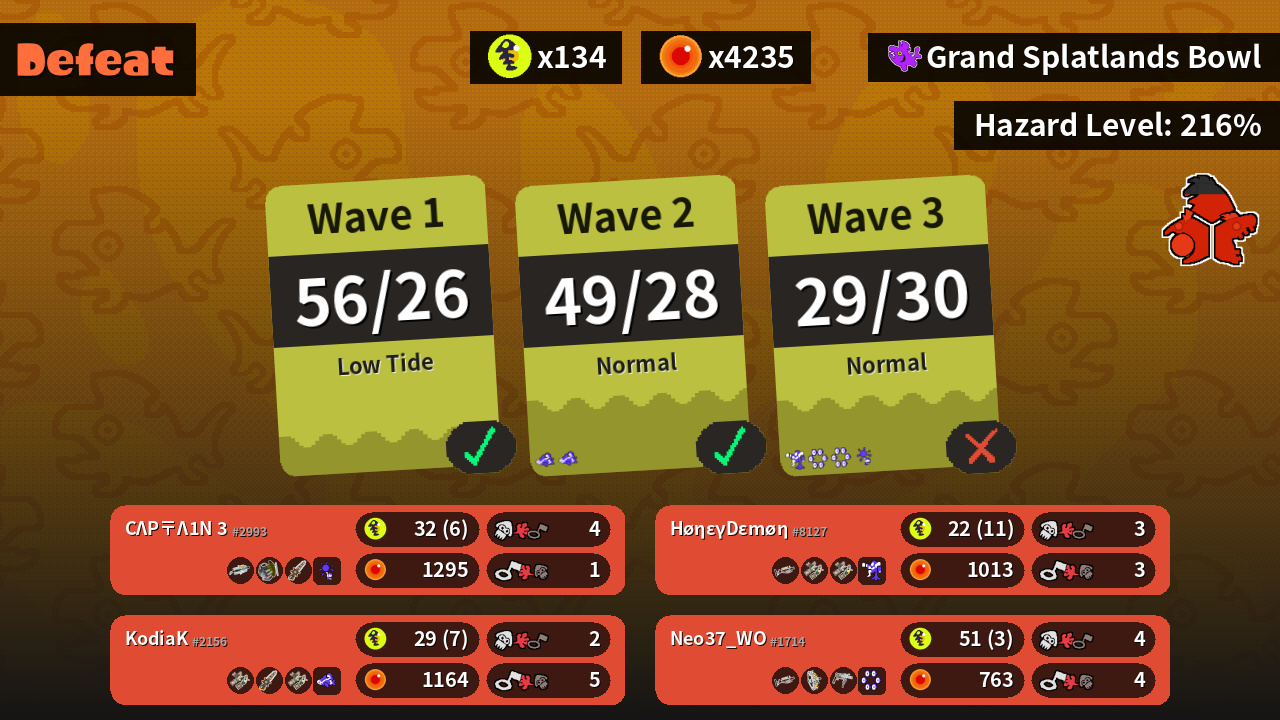 | Weapons | Grizzco Brella Grizzco Slosher Grizzco Splatana | Grizzco Charger Grizzco Stringer Grizzco Roller | Grizzco Dualies Grizzco Splatana Grizzco Dualies | Grizzco Charger Grizzco Dualies Grizzco Dualies |