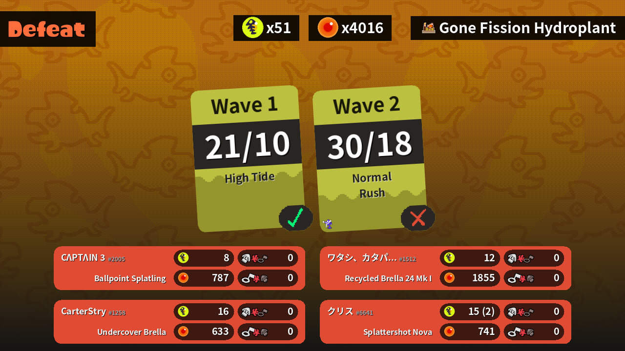 | Weapons | Ballpoint Splatling | Undercover Brella | Splattershot Nova | Recycled Brella 24 Mk I |