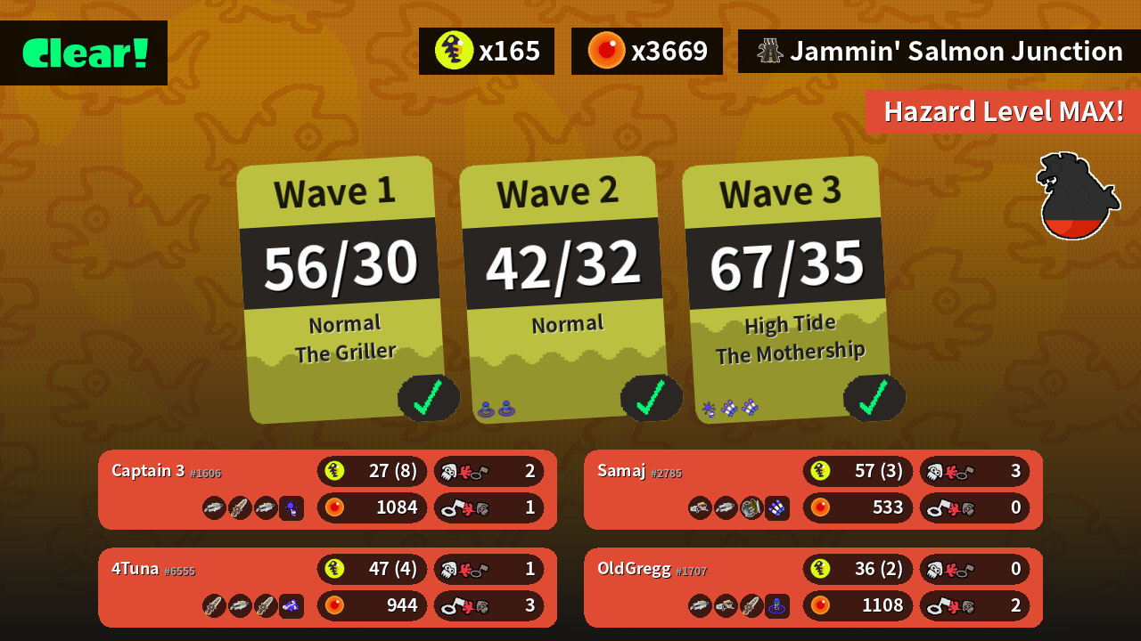 | Weapons | Grizzco Brella Grizzco Splatana Grizzco Brella | Grizzco Blaster Grizzco Brella Grizzco Slosher | Grizzco Splatana Grizzco Brella Grizzco Splatana | Grizzco Brella Grizzco Blaster Grizzco Splatana |
