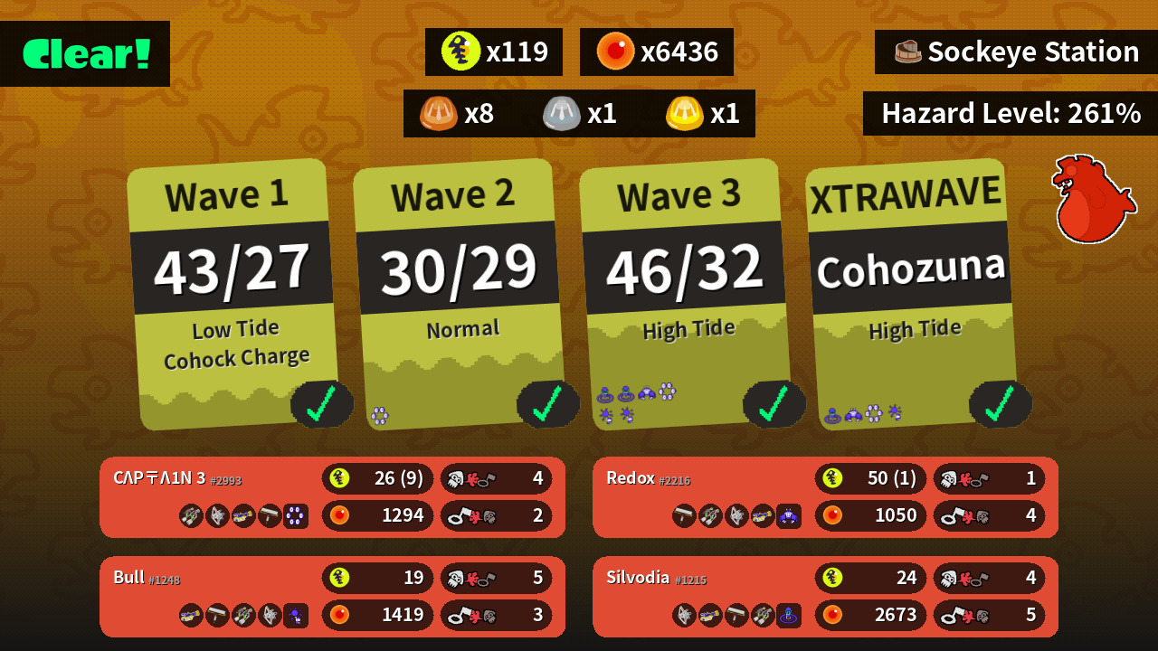 | Boss Salmonid | 27 | 15 | 24 | 19 |