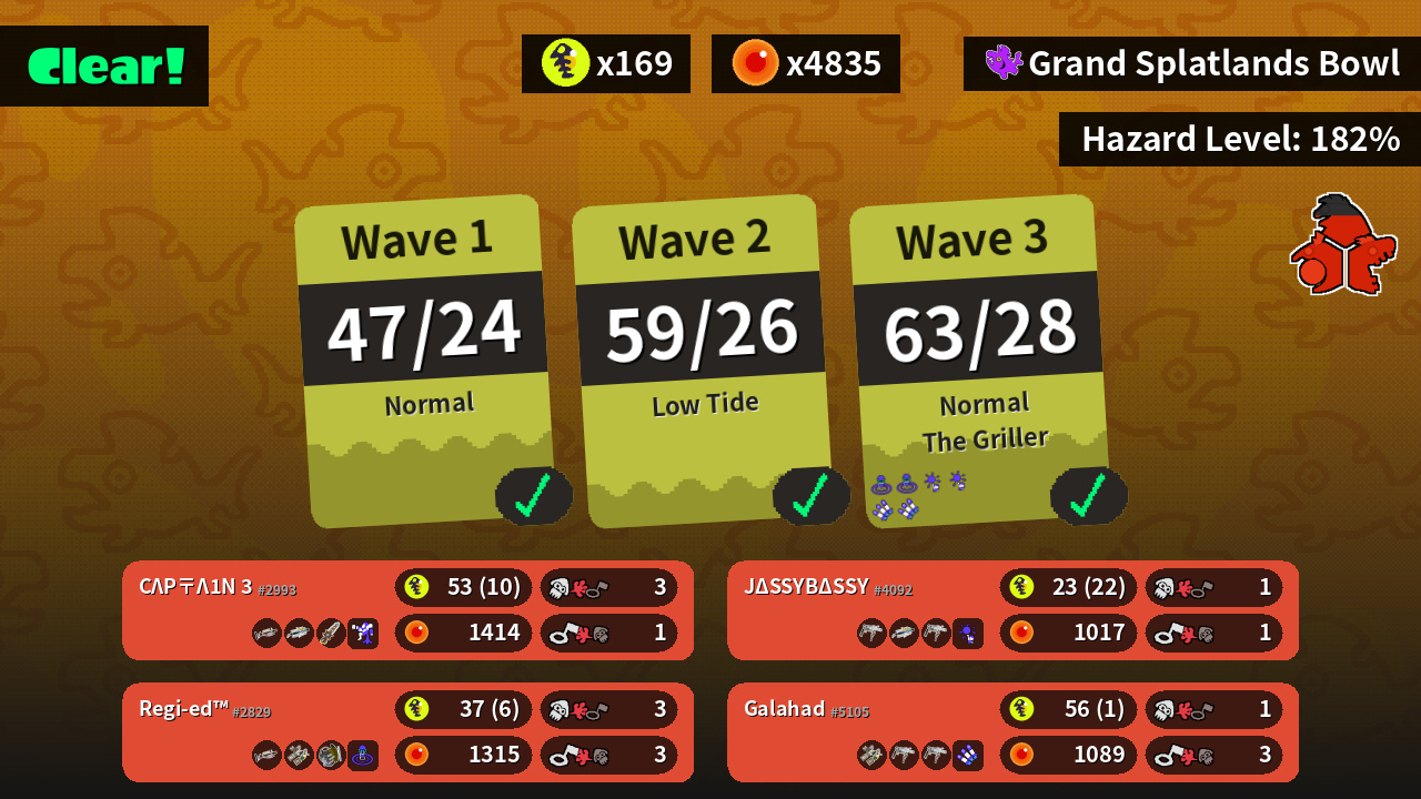 | Weapons | Grizzco Charger Grizzco Brella Grizzco Splatana | Grizzco Dualies Grizzco Roller Grizzco Roller | Grizzco Charger Grizzco Dualies Grizzco Slosher | Grizzco Roller Grizzco Brella Grizzco Roller |