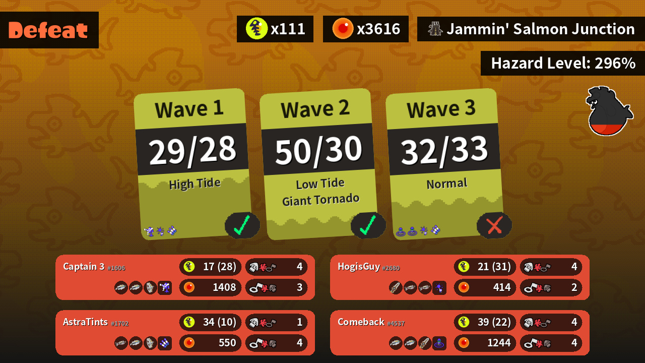 | Weapons | Grizzco Brella Grizzco Brella Grizzco Stringer | Grizzco Brella Grizzco Brella Grizzco Splatana | Grizzco Charger Grizzco Brella Grizzco Stringer | Grizzco Splatana Grizzco Charger Grizzco Charger |