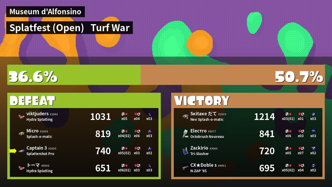 | Medals | #1 Popular Target #1 Enemy-Base Inker #1 Splat Assister | ||