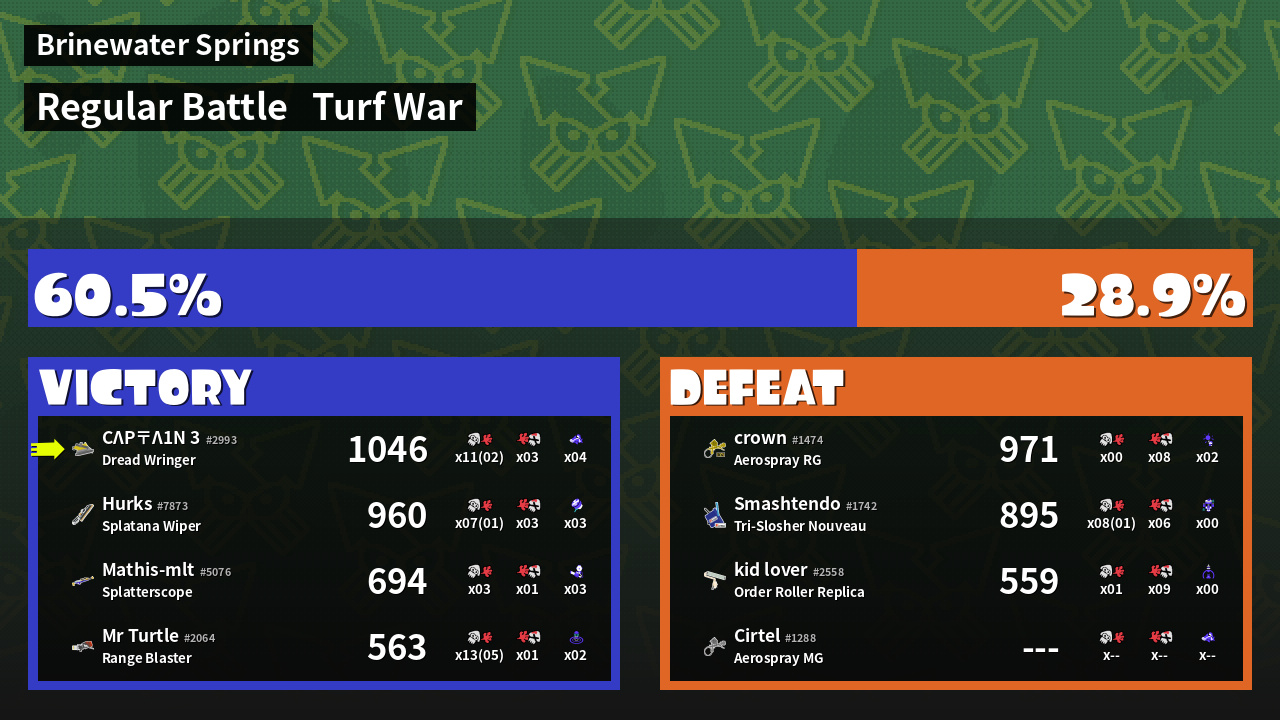 | Mode | Turf War - Regular Battle | ||