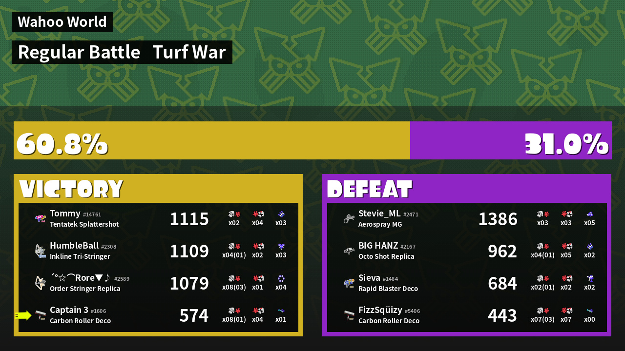 | Weapon | Carbon Roller Deco ( Burst Bomb / Trizooka) | ||