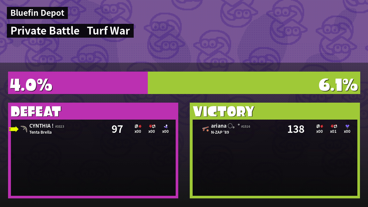 | Mode | Turf War - Private Battle | ||