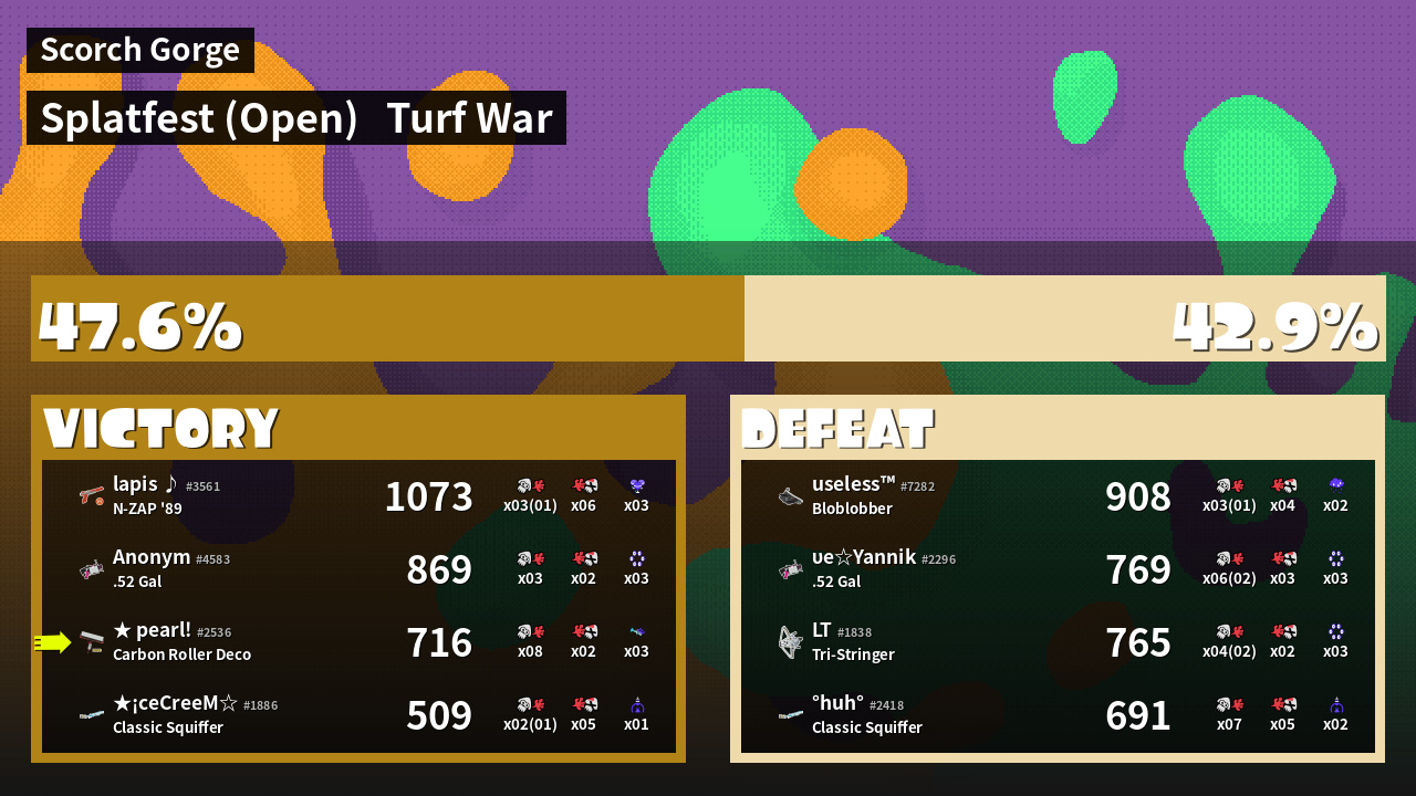 | Weapon | Carbon Roller Deco ( Burst Bomb / Trizooka) | ||
