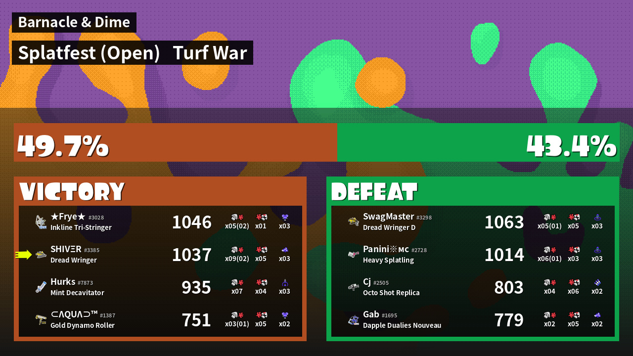 | Medals | #1 Overall Splatter #1 Popular Target #1 Home-Base Inker | ||