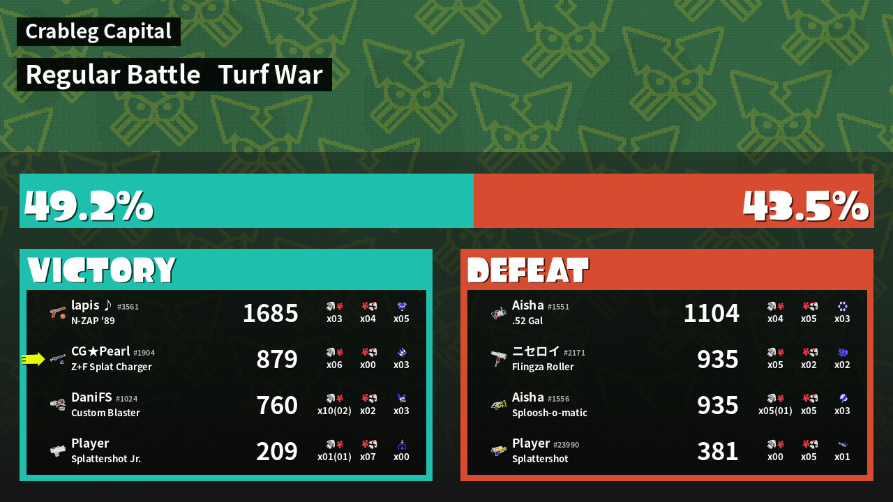 | Mode | Turf War - Regular Battle | ||