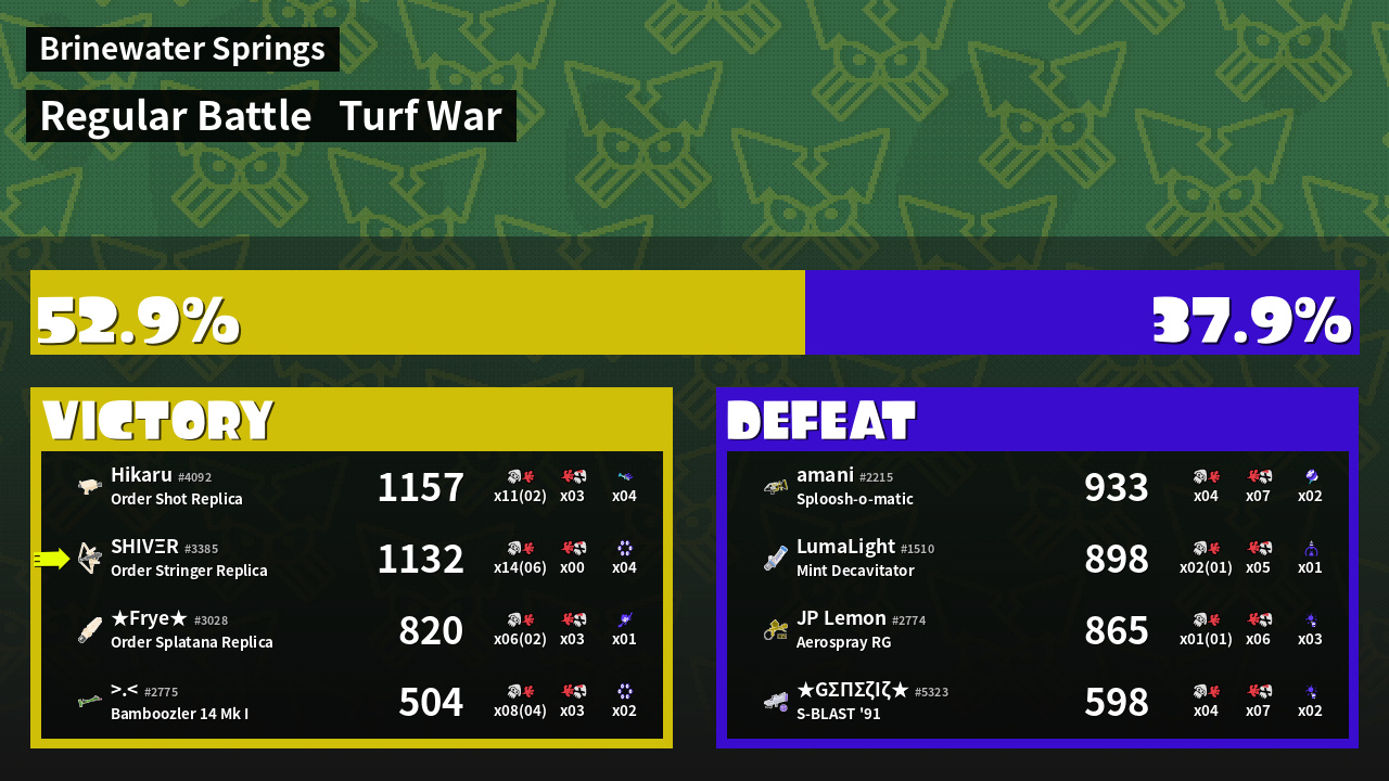 | Mode | Turf War - Regular Battle | ||