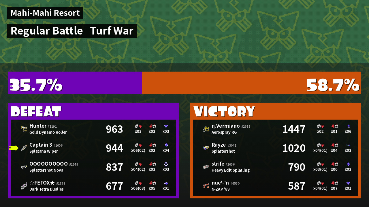 | Medals | #1 Overall Splatter #1 Home-Base Inker #1 Enemy Splatter | ||
