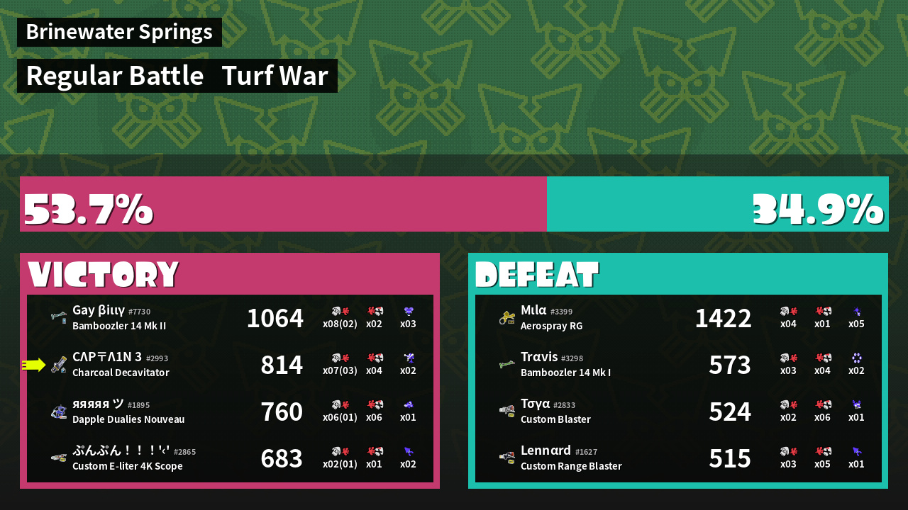 | Mode | Turf War - Regular Battle | ||