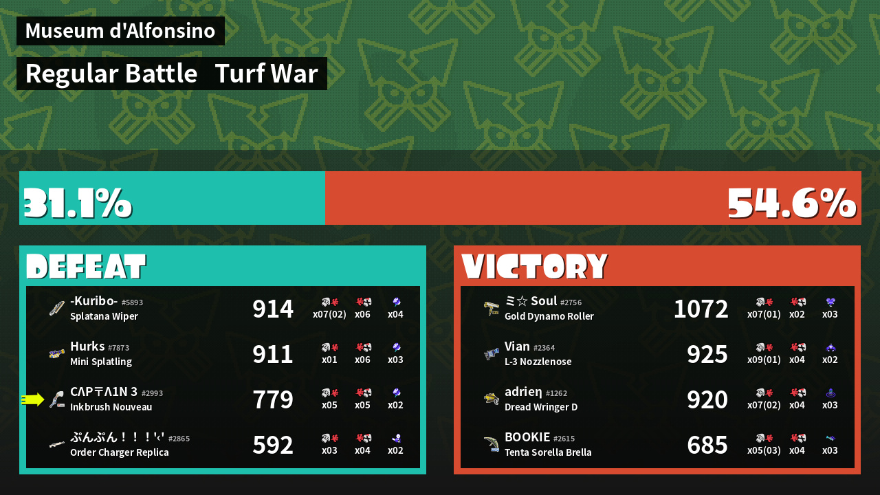 | Medals | #1 Popular Target #1 Enemy-Base Inker #1 Enemy Splatter | ||
