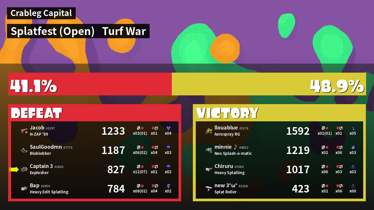 | Medals | #1 Overall Splatter #1 Super Jump Spot #1 Splat Assister | ||