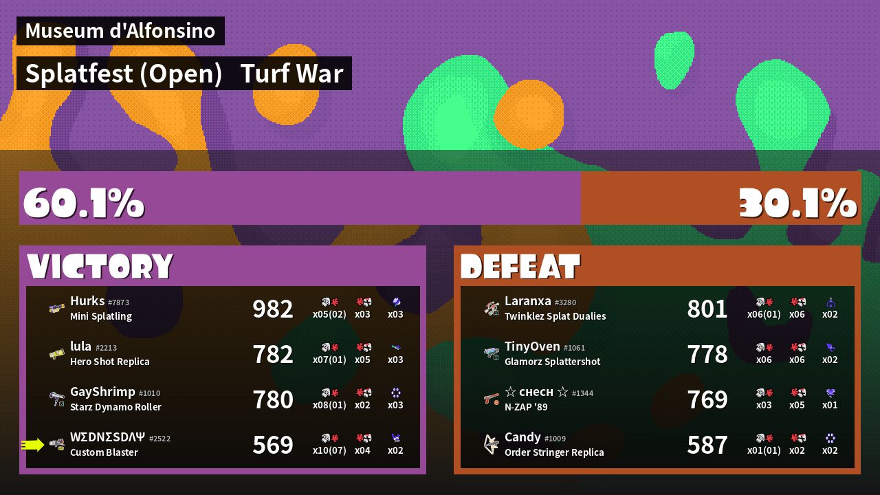 | Medals | #1 Overall Splatter #1 Splat Assister #1 Base Defender | ||