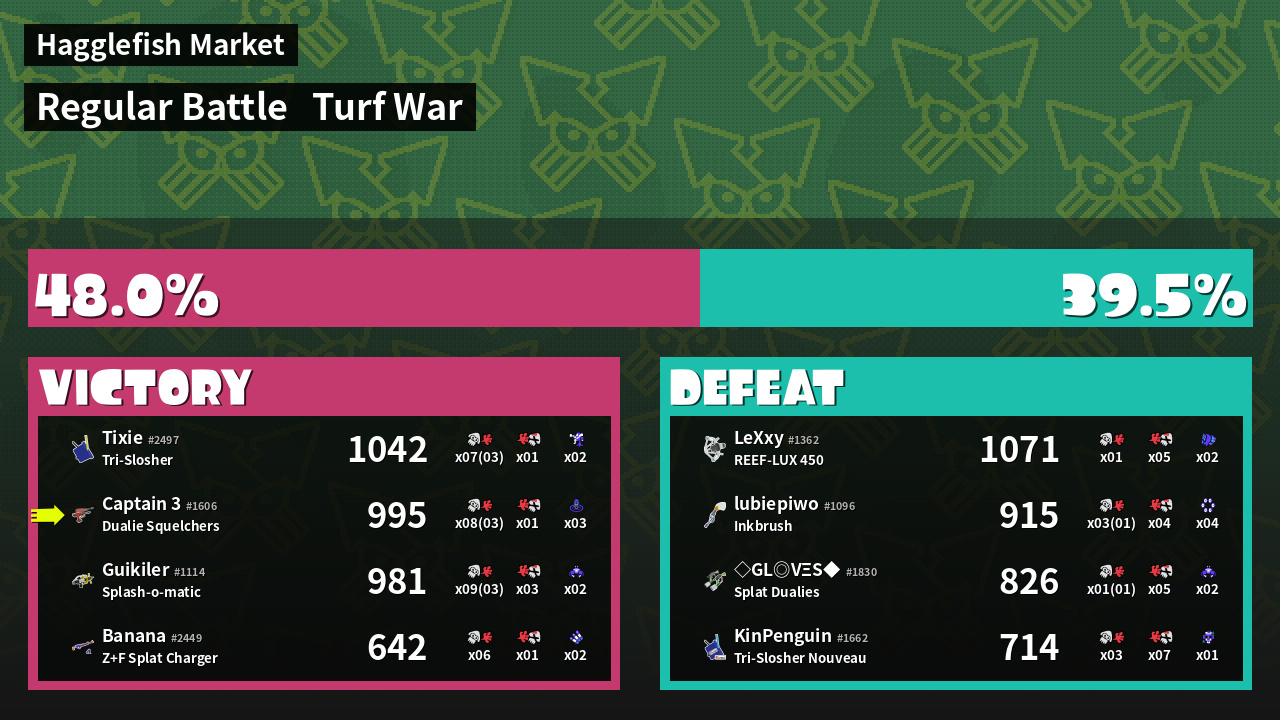 | Medals | #1 Enemy-Base Inker #1 Splat Assister #1 Ground Traveler | ||