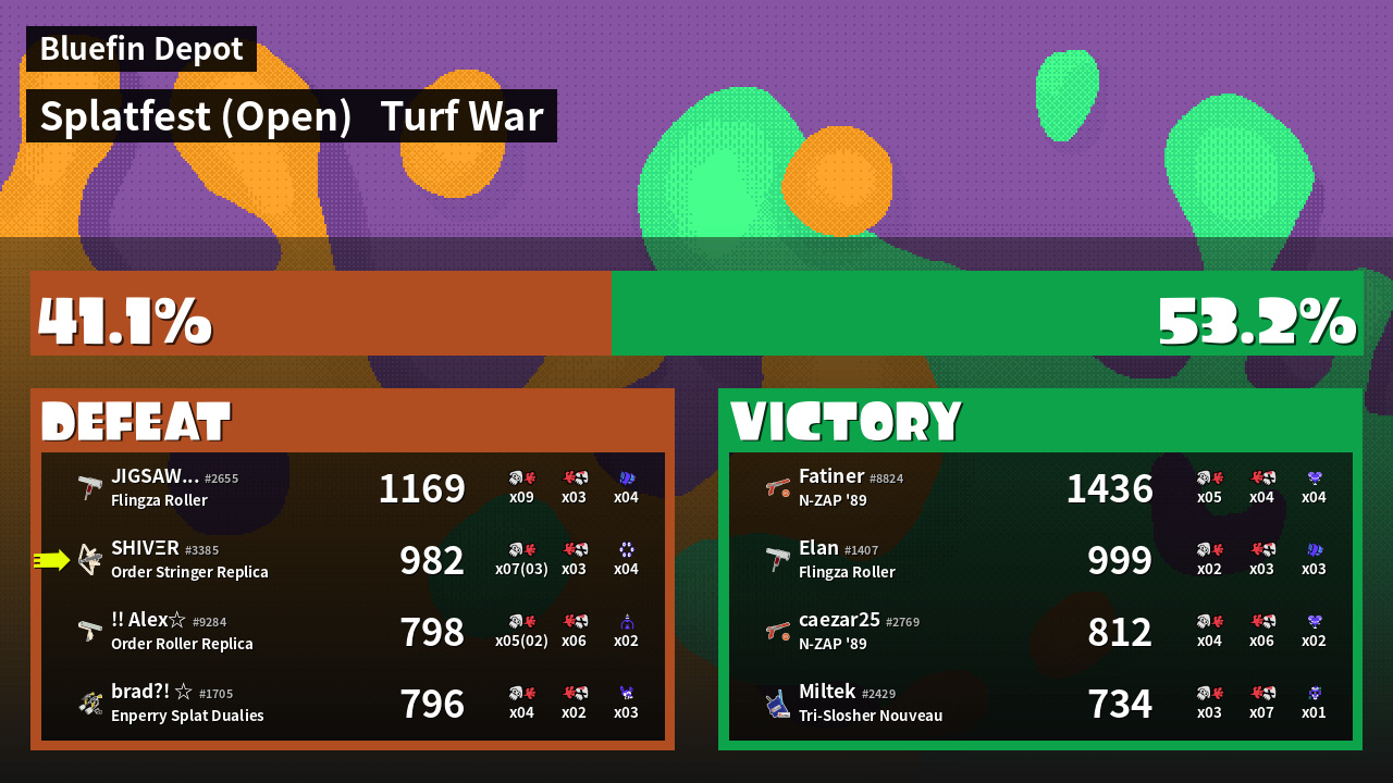 | Medals | #1 Home-Base Inker #1 Splat Assister #1 Base Defender | ||