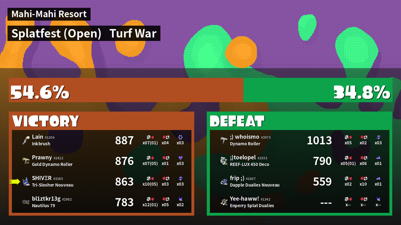 | Medals | #1 Splat Assister #1 Ground Traveler #1 Tacticooler User | ||
