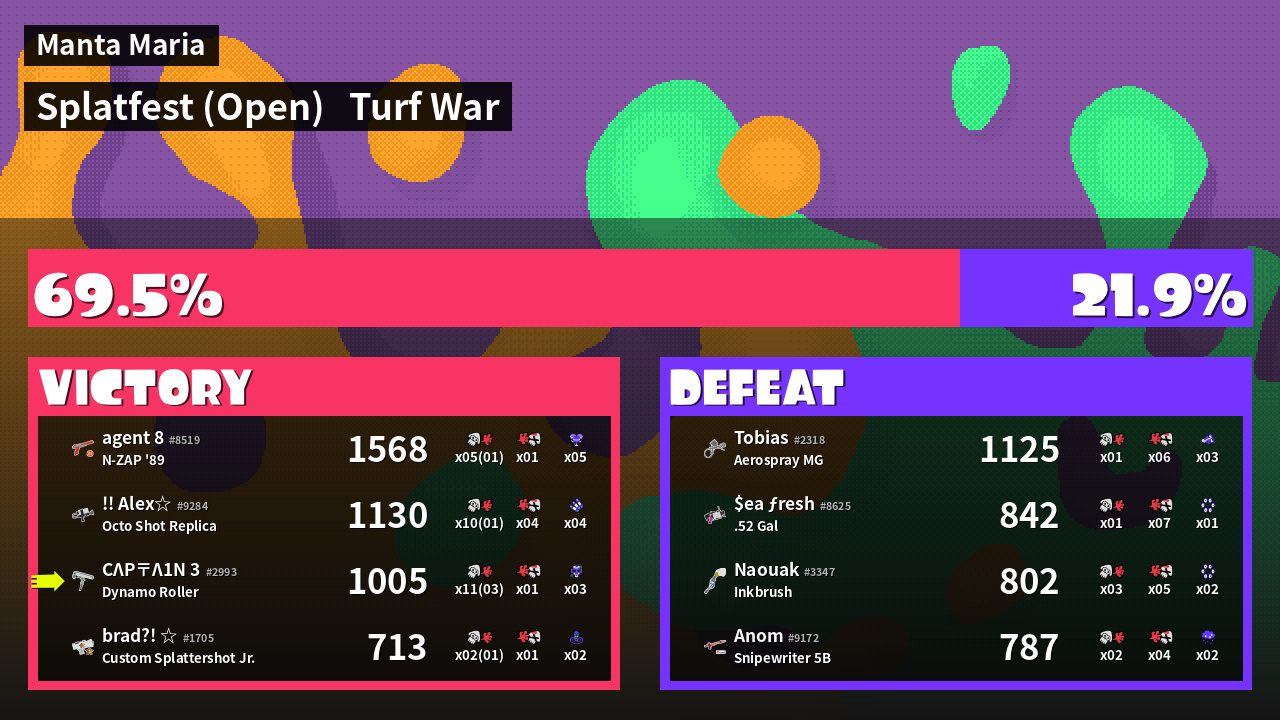 | Medals | #1 Overall Splatter #1 Popular Target #1 Home-Base Inker | ||