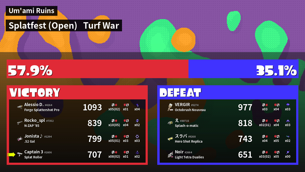 | Medals | #1 Enemy Splatter #1 Ground Traveler #2 Overall Splatter | ||