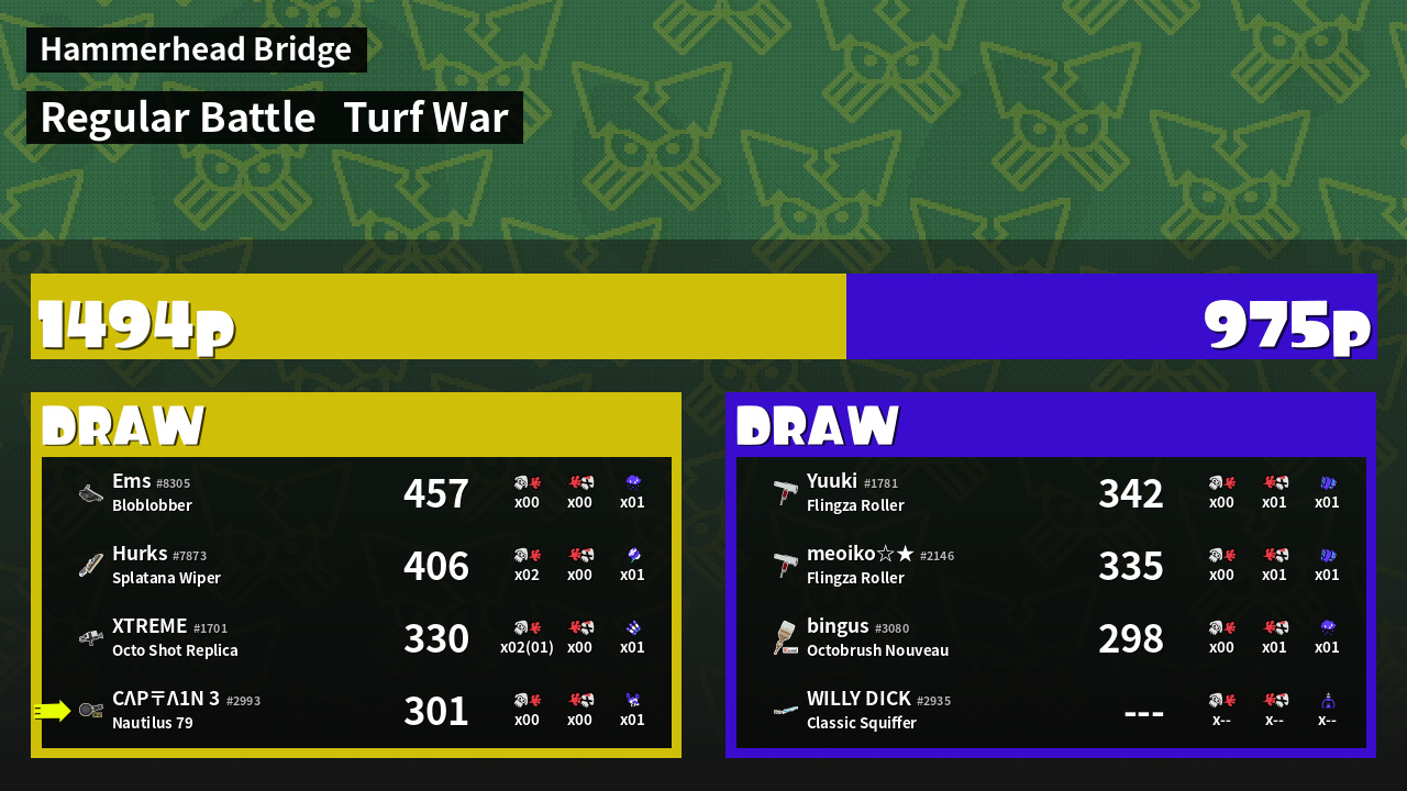 | Mode | Turf War - Regular Battle | ||