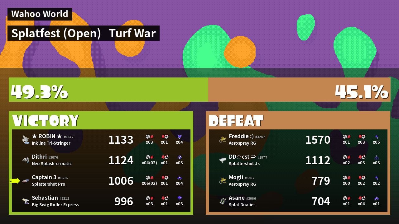 | Medals | #1 Overall Splatter #1 Popular Target #1 Home-Base Inker | ||