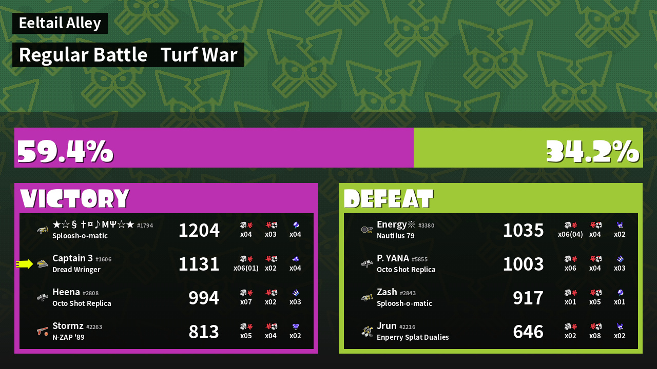 | Mode | Turf War - Regular Battle | ||